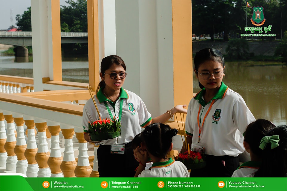 បន្ទាប់ពីបានបង្រៀនកូនៗសិស្សានុសិស្សពីព្រះរាជពិធីបុណ្យអុំទូក បណ្ដែតប្រទីប និងសំពះព្រះខែ នៅថ្នាក់រៀនរួច មត្តេយ្យ ឌូវី បាននាំសិស្សានុសិស្សចុះទៅទស្សនកិច្ចសិក្សាផ្ទាល់នៅអគារវេទិកាអុំទូក ខេត្តបាត់ដំបង គោលបំណងបង្ហាញកុមារឲ្យស្គាល់ពីអំពីរចនាបថរបស់អគារនេះដែលមានទាំងបែបបុរាណរបស់ខ្មែរ លាយឡំនិងរចនាបថជំនាន់បារាំងខ្លះផង។ លើសពីនេះទៅទៀតយើងបានពន្យល់ពីគោលបំណងដែលគេធ្វើអគារនេះឡើង និងកន្លែងបណ្ដែតប្រទីបដែលខេត្តបាត់ដំបងបានរៀបចំធ្វើជារៀងឆ្នាំ ដើម្បីបណ្ដុះគំនិត ដល់កូនតូចអោយបានស្គាល់ពីបុណ្យជាតិ ចេះស្រលាញ់ និងលើកតម្កើងវប្បធម៌ដែលខ្មែរមានអោយបានគង់វង្ស។