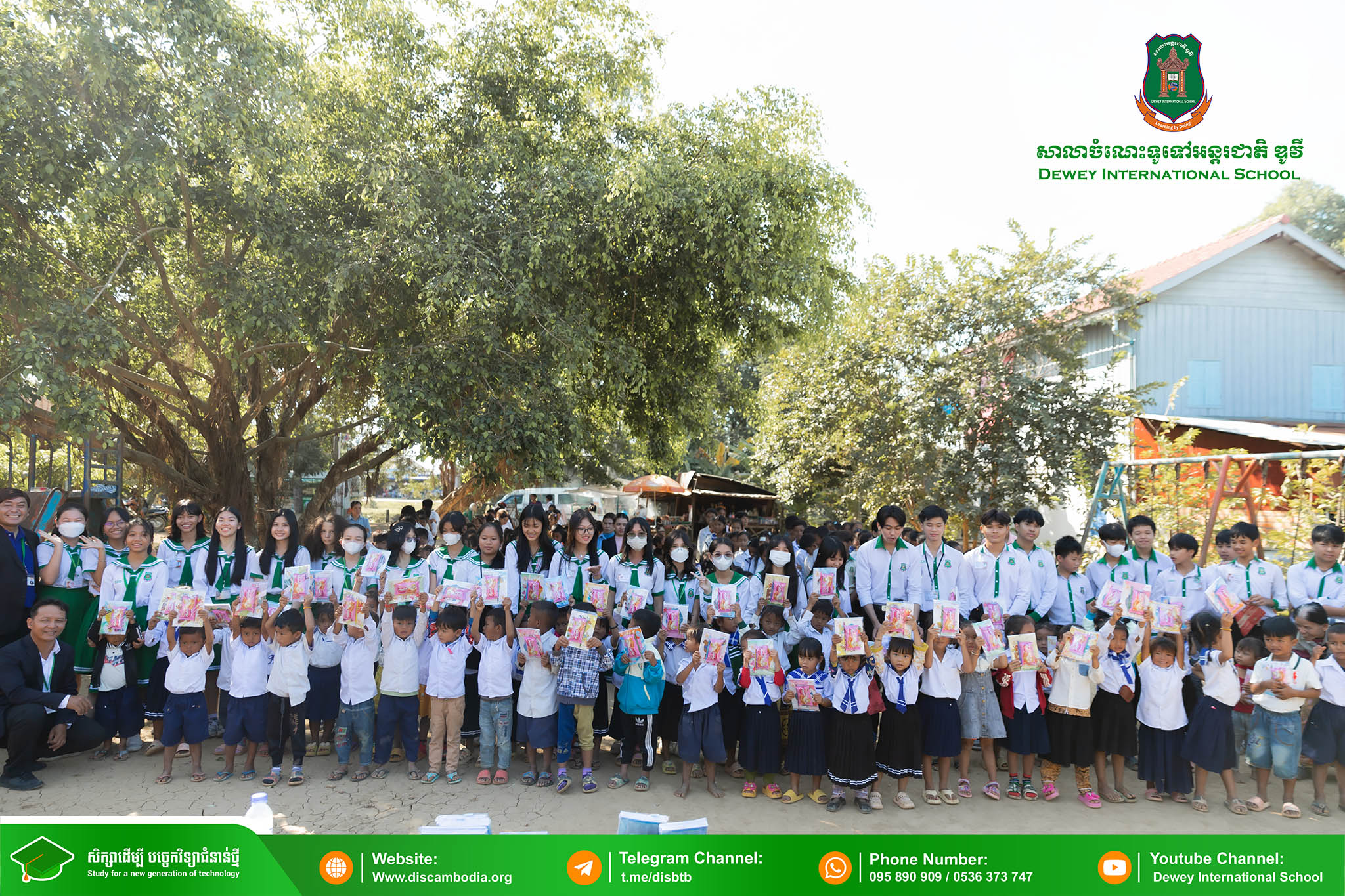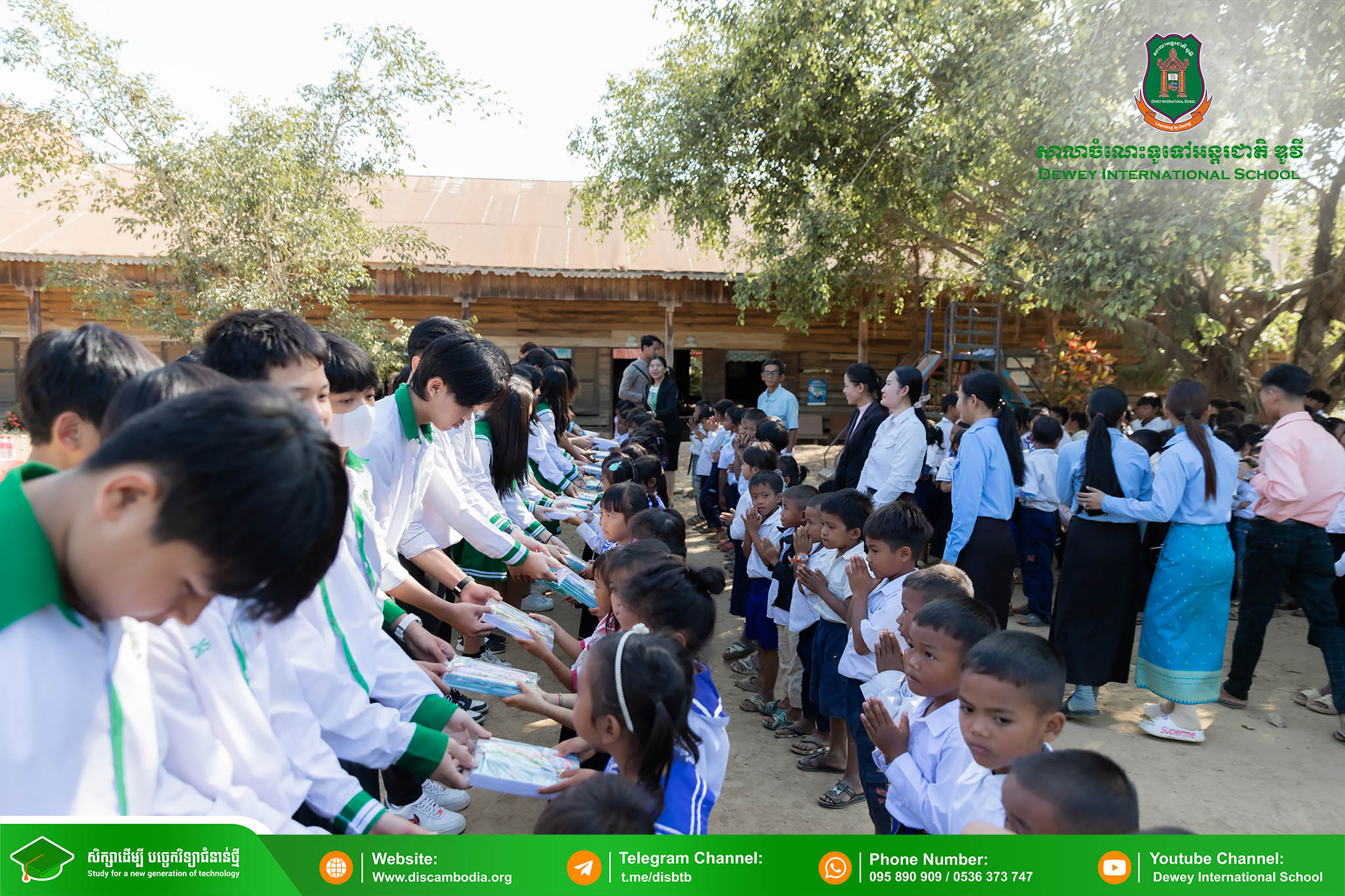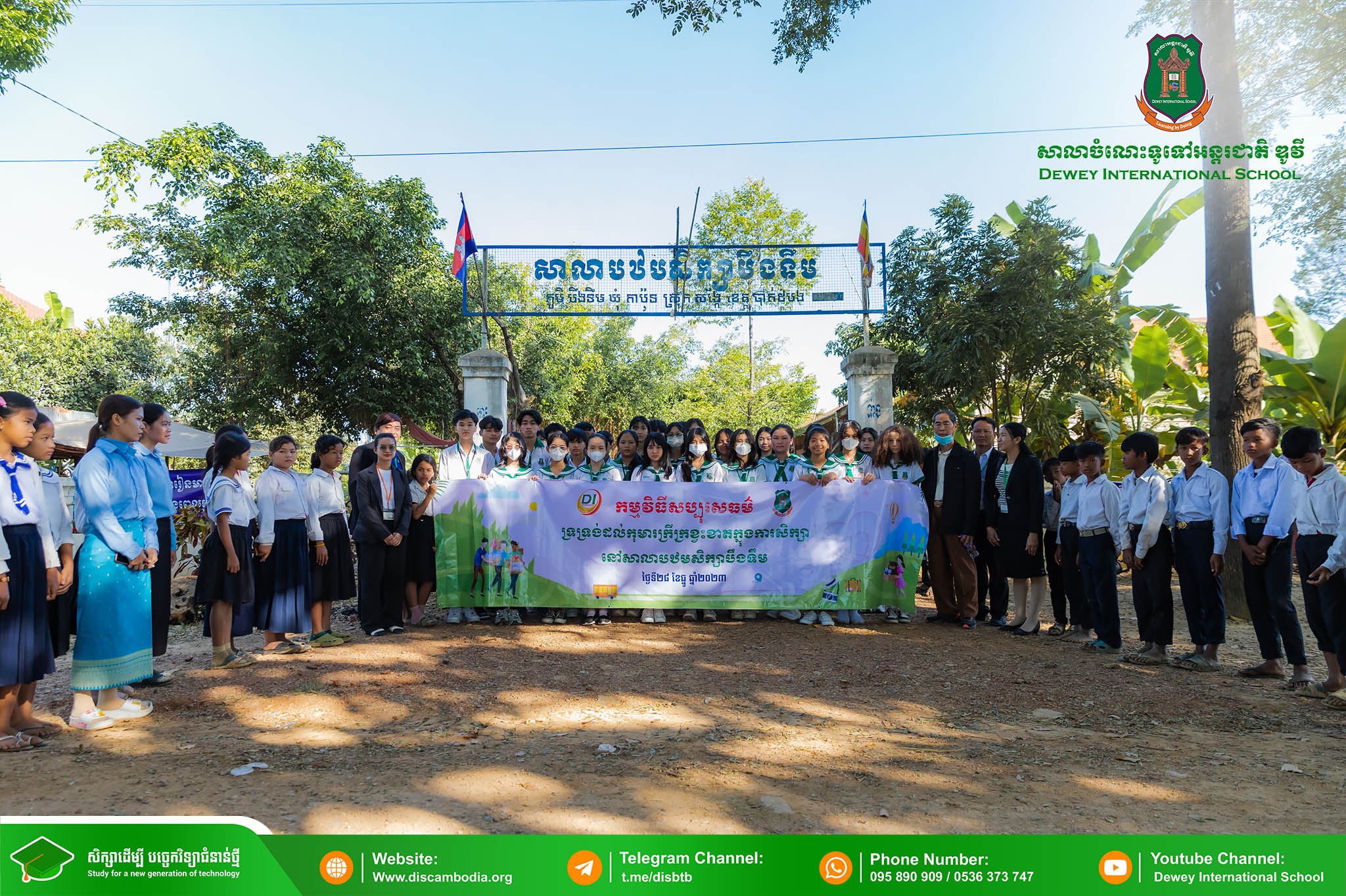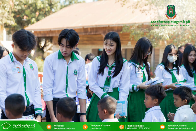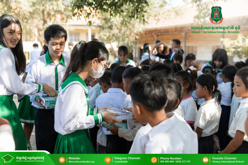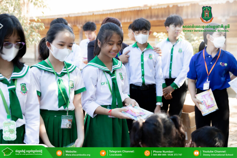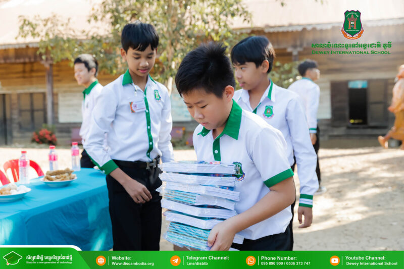 នាព្រឹកថ្ងៃព្រហស្បតិ៍ ១ រោច ខែមិគសិរ ឆ្នាំថោះ បញ្ចស័ក ព.ស.២៥៦៧ ត្រូវនឹងថ្ងៃទី២៨ ខែធ្នូ ឆ្នាំ២០២៣ លោក នាក់ ម៉ាង នាយកសាលាចំណេះទូទៅអន្តរជាតិ ឌូវី ទីតាំងគោល បានដឹកនាំគណៈគ្រប់គ្រង លោកគ្រូ អ្នកគ្រូ និងសិស្សានុសិស្ស នាំយកអំណោយជាសម្ភារសិក្សាដែលទទួលបានពីការចូលរួមរបស់សប្បុរសជនផ្ដល់ជូន សិស្សានុសិស្ស នៃសាលាបឋមសិក្សាបឹងទឹម ស្ថិតនៅភូមិបឹងទឹម ឃុំតាប៉ុន ស្រុកសង្កែ ខេត្តបាត់ដំបង ដើម្បីជួយទ្រទ្រង់ដល់ប្អូនៗដែលកំពុងជួបភាពលំបាក និងខ្វះខាតនៅទីនោះឱ្យមានលទ្ធភាពបន្តការសិក្សា។
