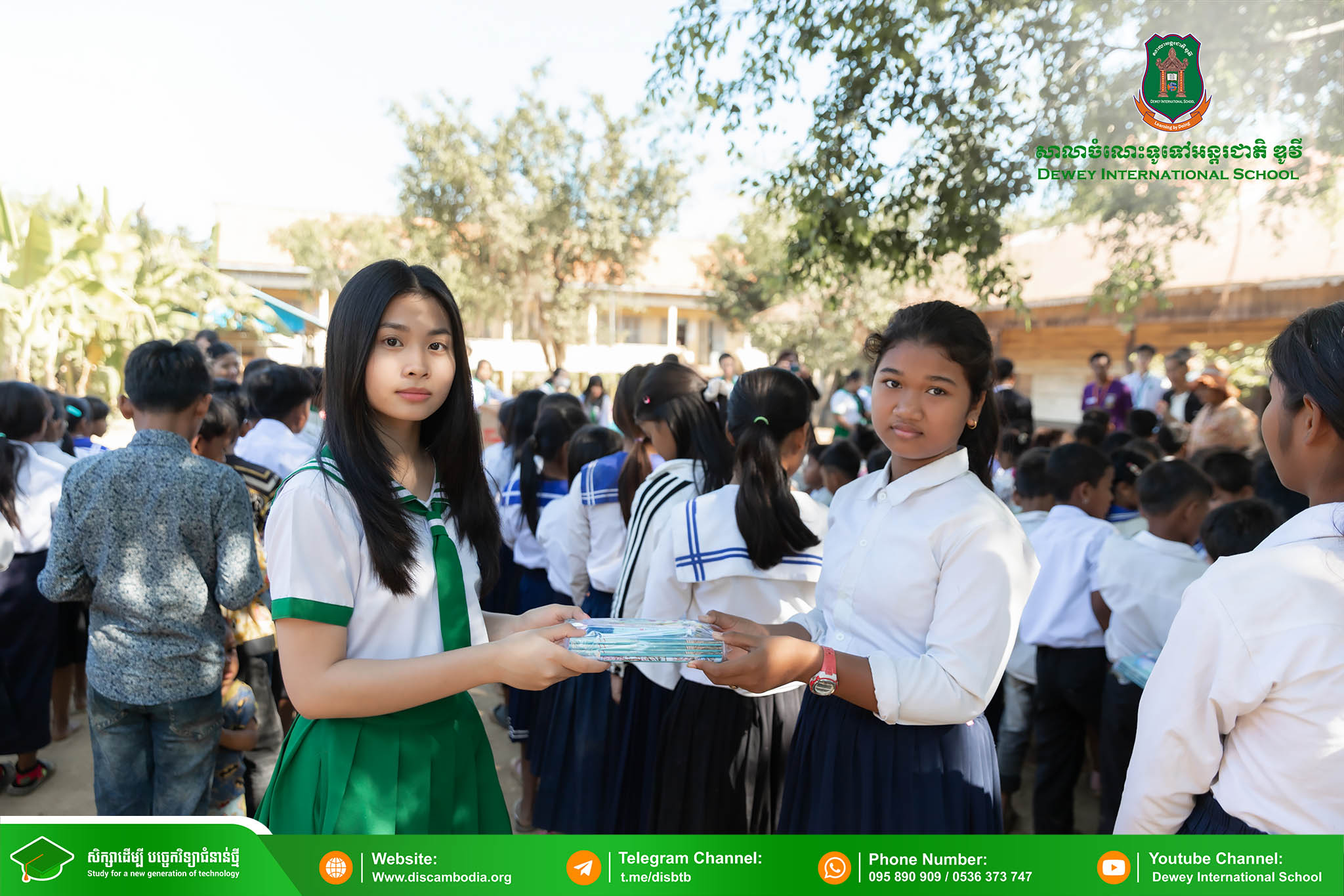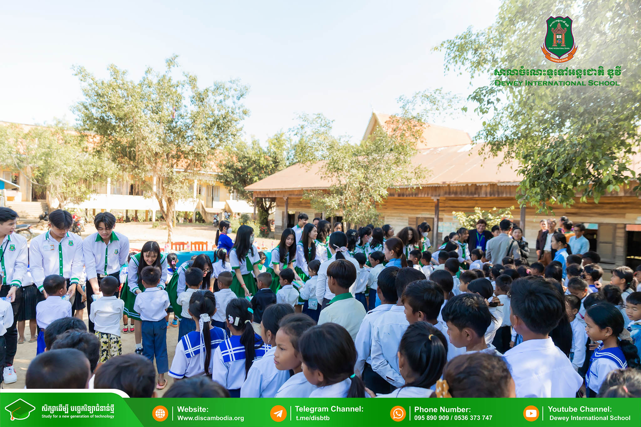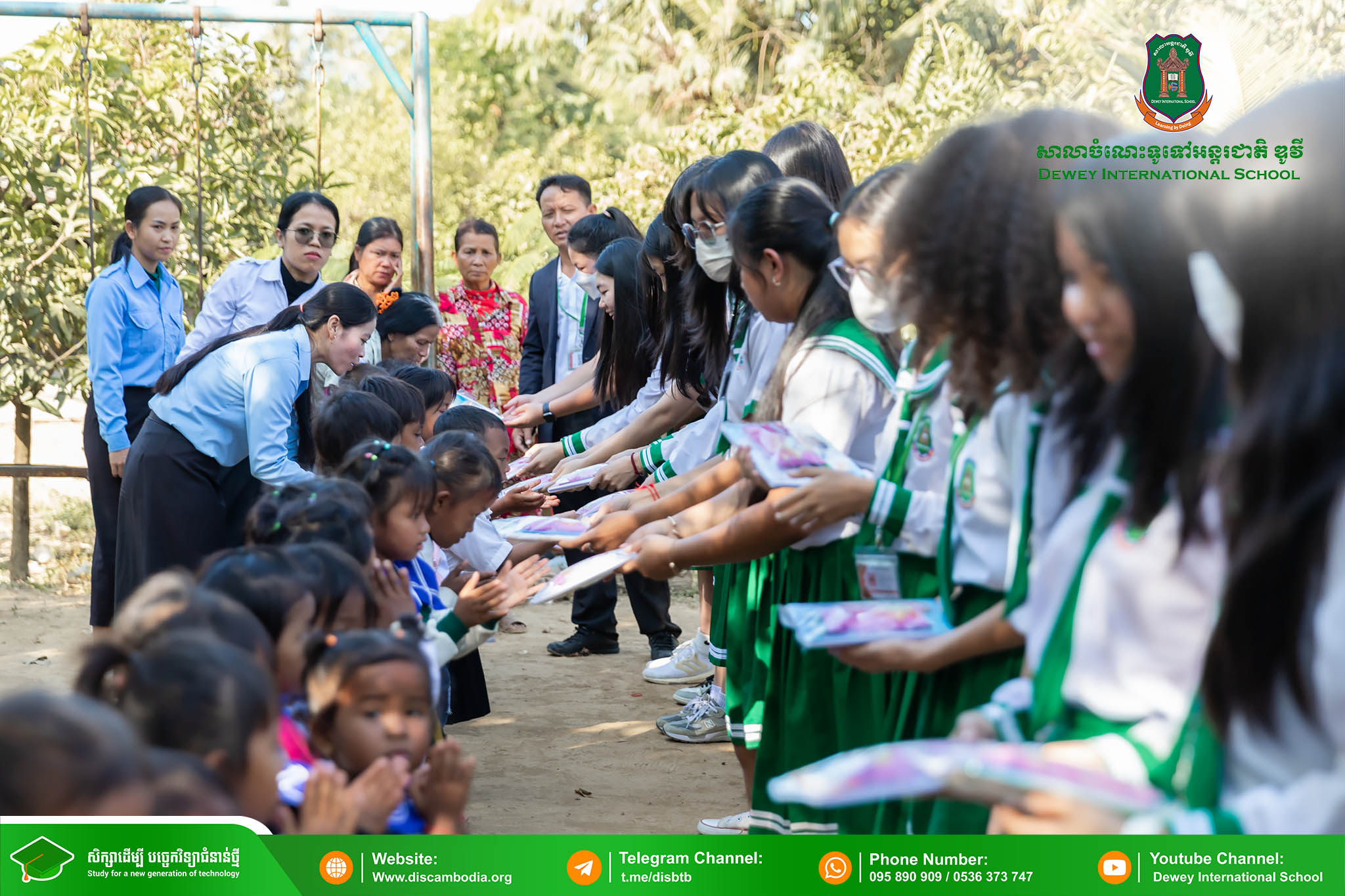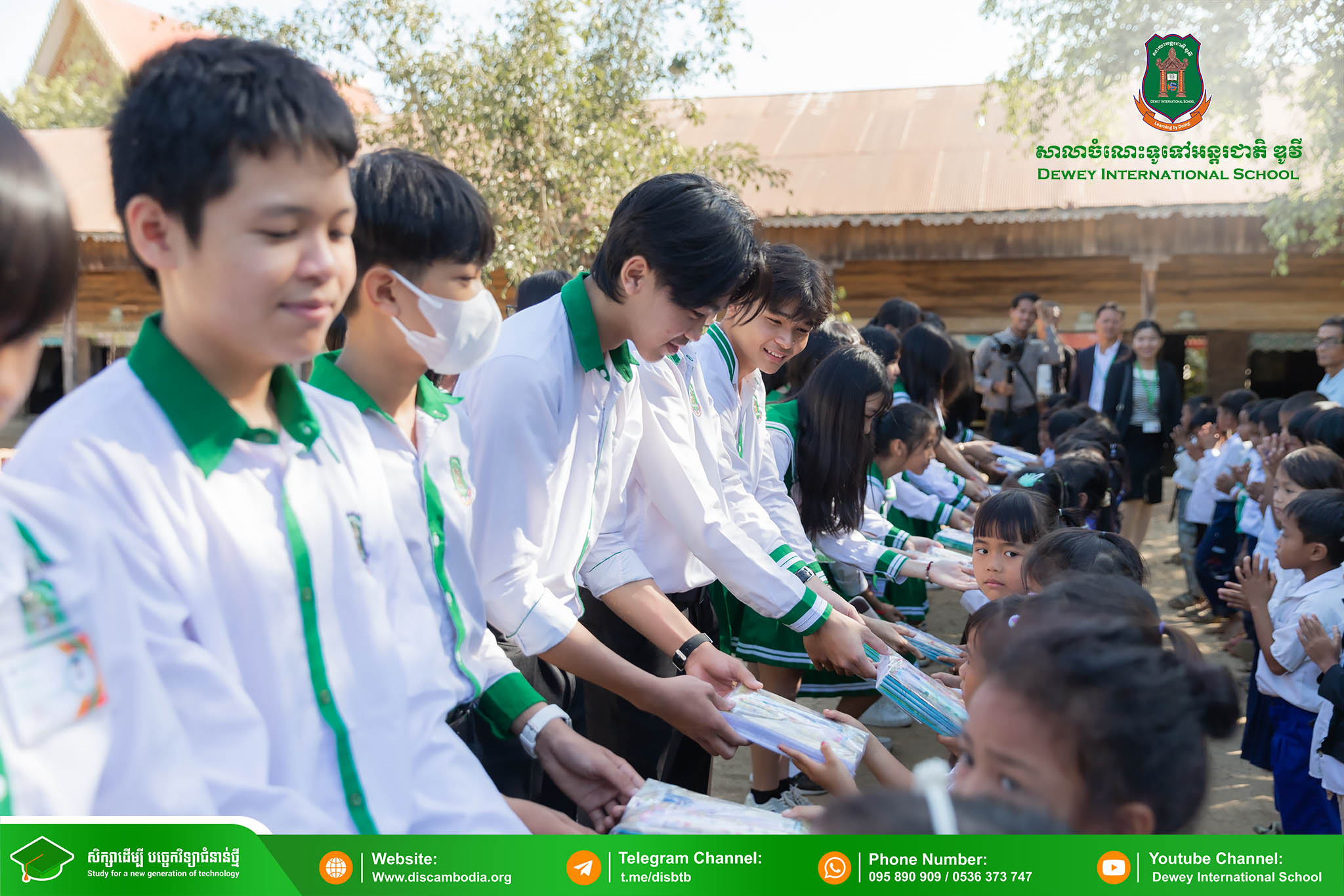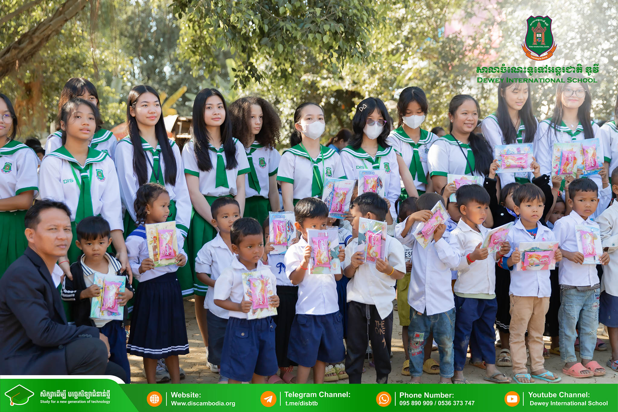 នាព្រឹកថ្ងៃព្រហស្បតិ៍ ១ រោច ខែមិគសិរ ឆ្នាំថោះ បញ្ចស័ក ព.ស.២៥៦៧ ត្រូវនឹងថ្ងៃទី២៨ ខែធ្នូ ឆ្នាំ២០២៣ លោក នាក់ ម៉ាង នាយកសាលាចំណេះទូទៅអន្តរជាតិ ឌូវី ទីតាំងគោល បានដឹកនាំគណៈគ្រប់គ្រង លោកគ្រូ អ្នកគ្រូ និងសិស្សានុសិស្ស នាំយកអំណោយជាសម្ភារសិក្សាដែលទទួលបានពីការចូលរួមរបស់សប្បុរសជនផ្ដល់ជូន សិស្សានុសិស្ស នៃសាលាបឋមសិក្សាបឹងទឹម ស្ថិតនៅភូមិបឹងទឹម ឃុំតាប៉ុន ស្រុកសង្កែ ខេត្តបាត់ដំបង ដើម្បីជួយទ្រទ្រង់ដល់ប្អូនៗដែលកំពុងជួបភាពលំបាក និងខ្វះខាតនៅទីនោះឱ្យមានលទ្ធភាពបន្តការសិក្សា។