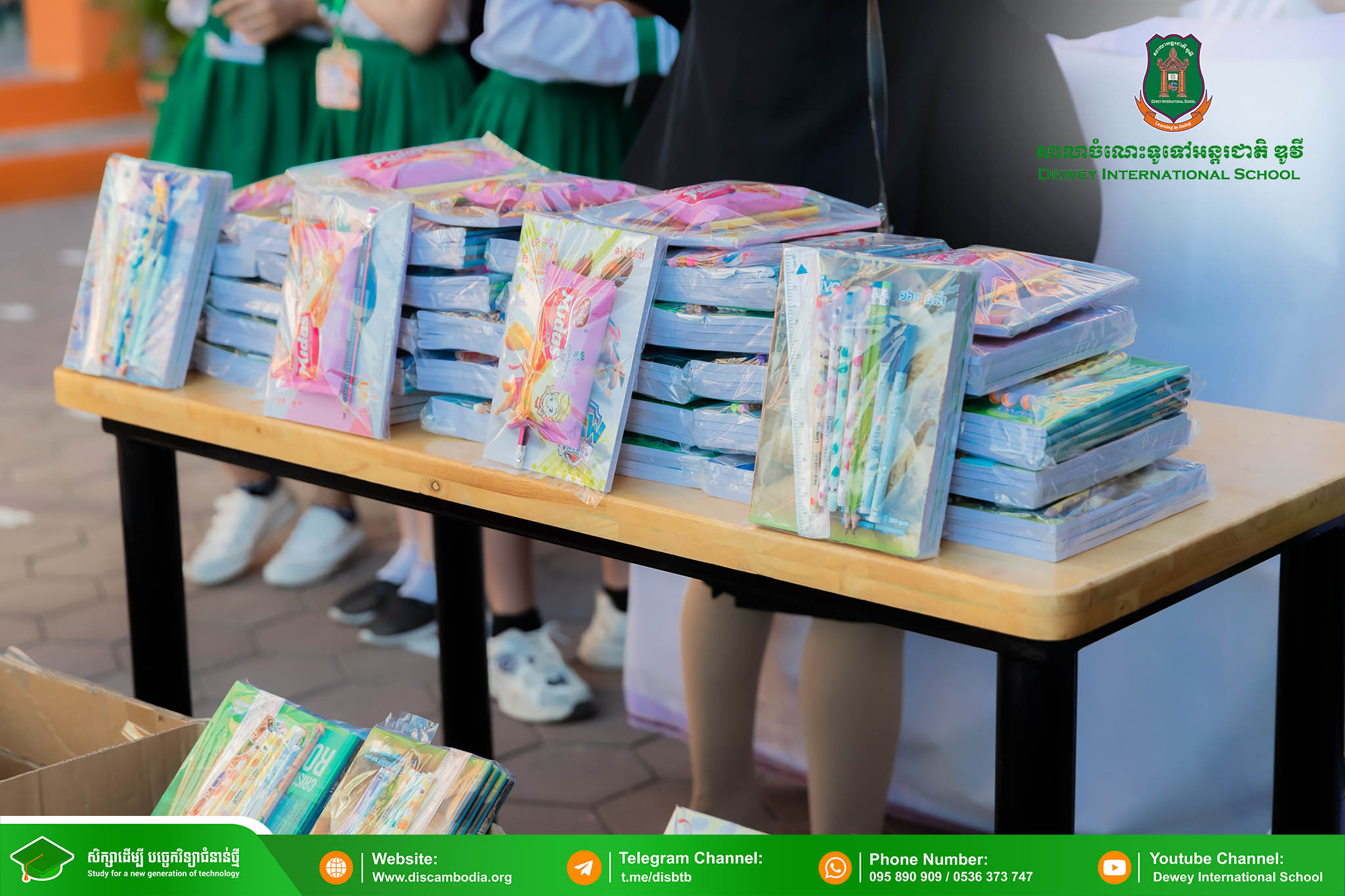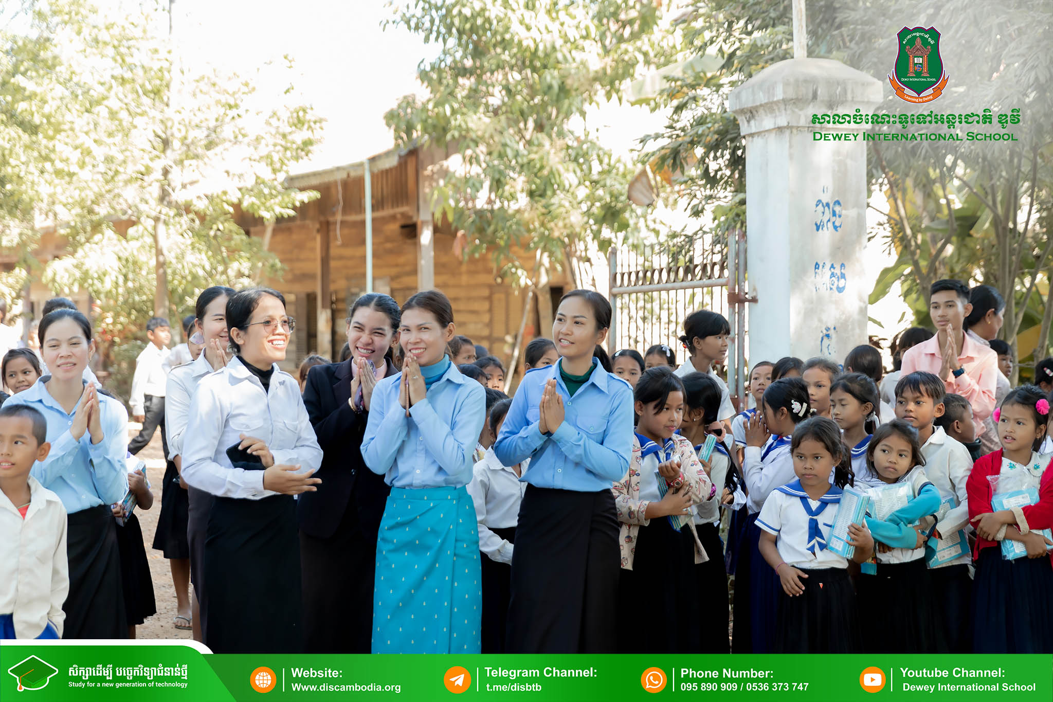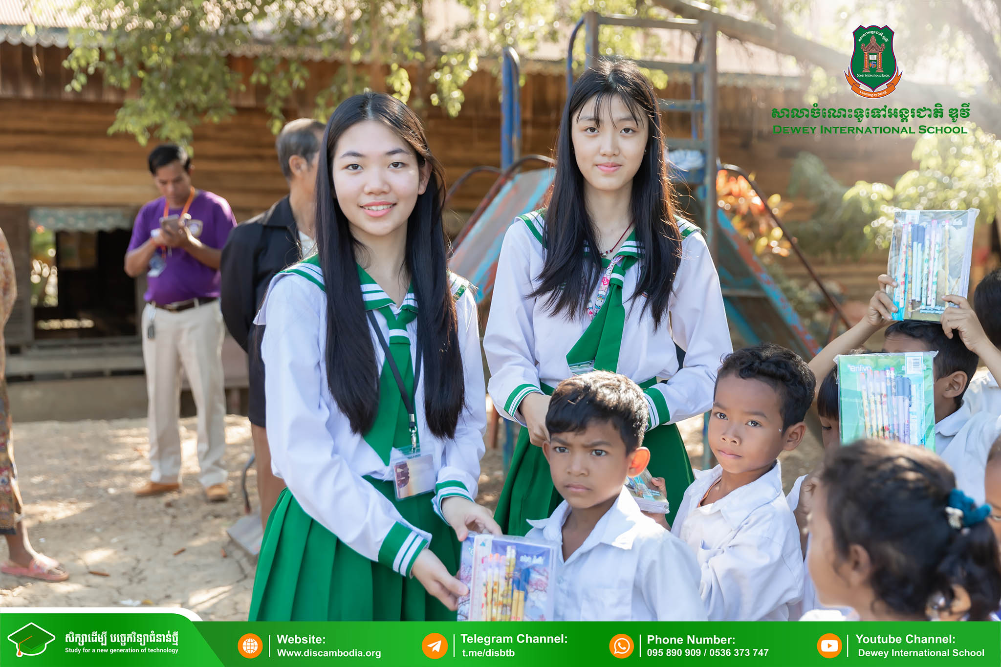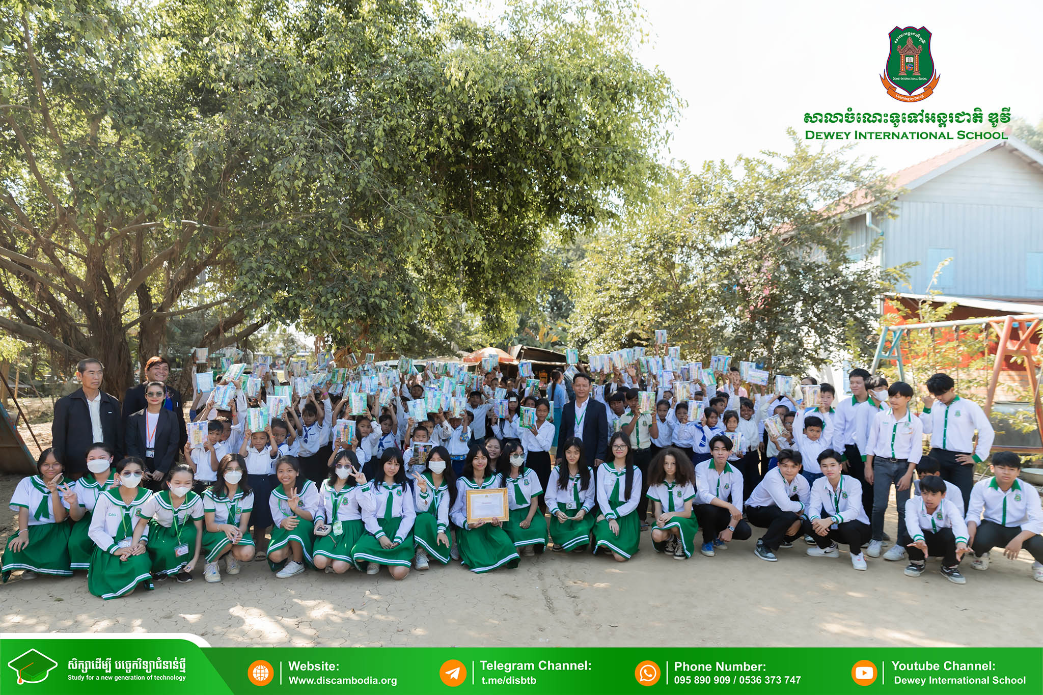 នាព្រឹកថ្ងៃព្រហស្បតិ៍ ១ រោច ខែមិគសិរ ឆ្នាំថោះ បញ្ចស័ក ព.ស.២៥៦៧ ត្រូវនឹងថ្ងៃទី២៨ ខែធ្នូ ឆ្នាំ២០២៣ លោក នាក់ ម៉ាង នាយកសាលាចំណេះទូទៅអន្តរជាតិ ឌូវី ទីតាំងគោល បានដឹកនាំគណៈគ្រប់គ្រង លោកគ្រូ អ្នកគ្រូ និងសិស្សានុសិស្ស នាំយកអំណោយជាសម្ភារសិក្សាដែលទទួលបានពីការចូលរួមរបស់សប្បុរសជនផ្ដល់ជូន សិស្សានុសិស្ស នៃសាលាបឋមសិក្សាបឹងទឹម ស្ថិតនៅភូមិបឹងទឹម ឃុំតាប៉ុន ស្រុកសង្កែ ខេត្តបាត់ដំបង ដើម្បីជួយទ្រទ្រង់ដល់ប្អូនៗដែលកំពុងជួបភាពលំបាក និងខ្វះខាតនៅទីនោះឱ្យមានលទ្ធភាពបន្តការសិក្សា។