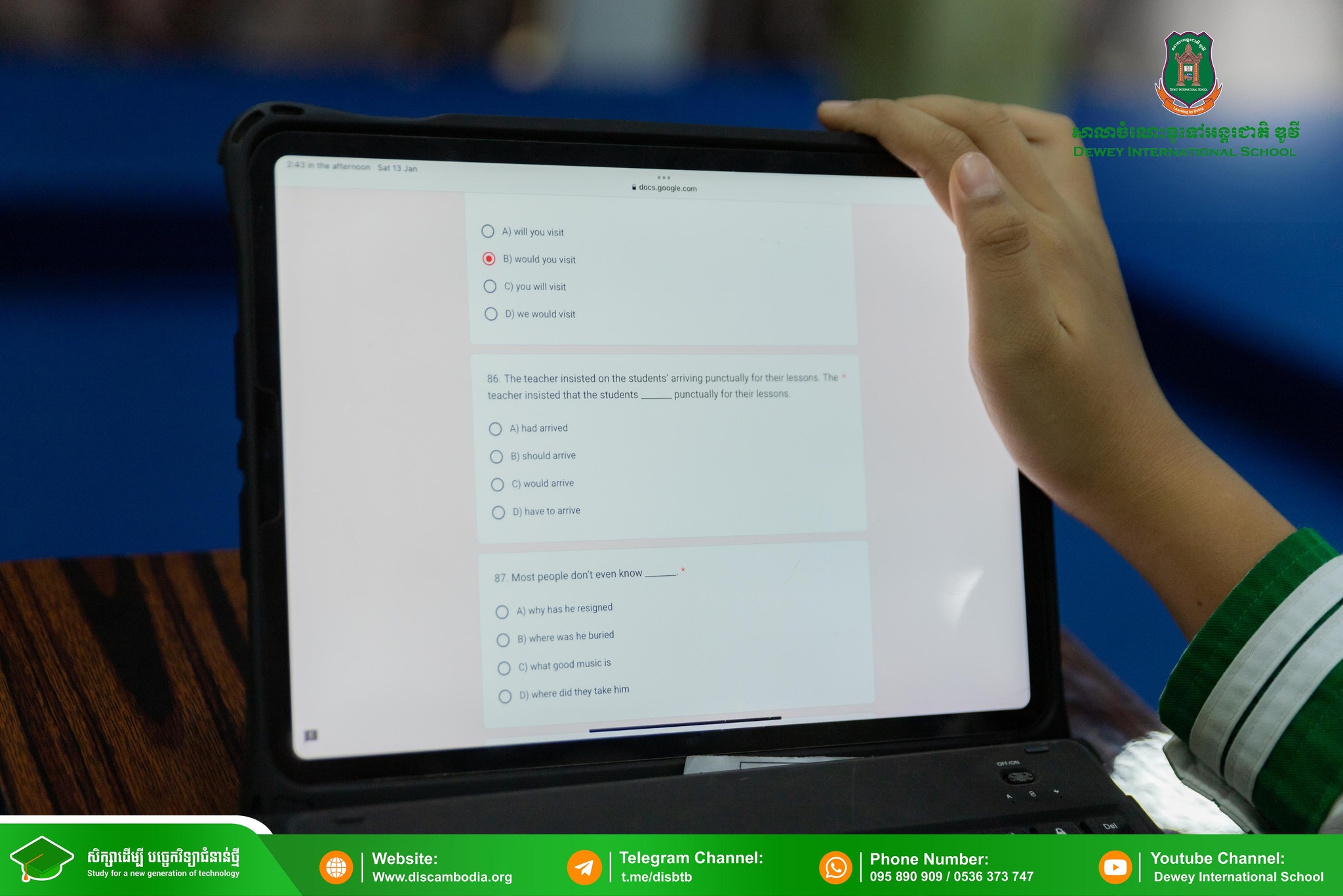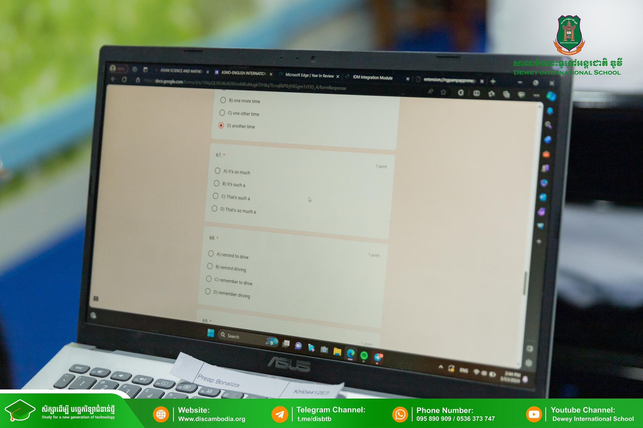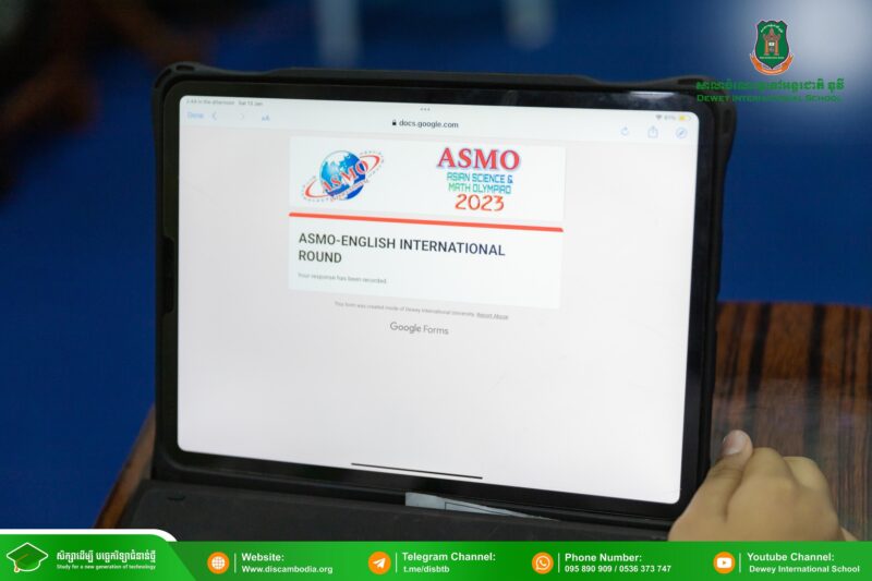 នារសៀលថ្ងៃទី១៣ ខែមករា ឆ្នាំ២០២៤ សិស្សានុសិស្ស នៃសាលាចំណេះទូទៅអន្តរជាតិ ឌូវី បានចូលរួមប្រឡងវគ្គផ្ដាច់ព្រ័ត្រ ថ្នាក់អន្តរជាតិ កម្មវិធីប្រកួតប្រជែង Asian Science and Math Olympiad – ASMO Internationl Round ក្រោមវិញ្ញាសា វិទ្យាសាស្រ្ត អង់គ្លេស និងគណិតវិទ្យា ដែលមានការចូលរួមប្រឡងប្រជែងពីតាមបណ្ដាប្រទេសនានាក្នុងតំបន់អាស៊ីរួមមាន ប្រទេសកម្ពុជា ហ្វីលីពីន ឥណ្ឌូនេស៊ី ម៉ាឡេស៊ី ថៃ ឥណ្ឌា ប៊ុលហ្គារី អាស៊ែបៃហ្សង់ មីយ៉ាន់ម៉ា និងប្រទេសវៀតណាម។