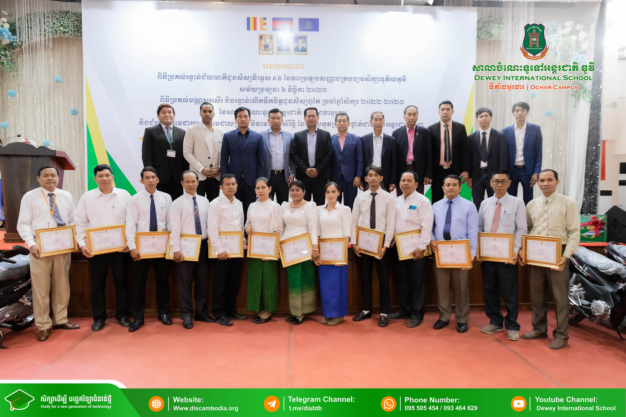 ពិធីប្រគល់បណ្ណសរសើរ និងរង្វាន់លើកទឹកចិត្ត សិស្សនិទ្ទេស A, B និងសិស្សពូកែប្រចាំឆ្នាំ ២០២២-២០២៣ពិធីប្រគល់បណ្ណសរសើរ និងរង្វាន់លើកទឹកចិត្ត សិស្សនិទ្ទេស A, B និងសិស្សពូកែប្រចាំឆ្នាំ ២០២២-២០២៣