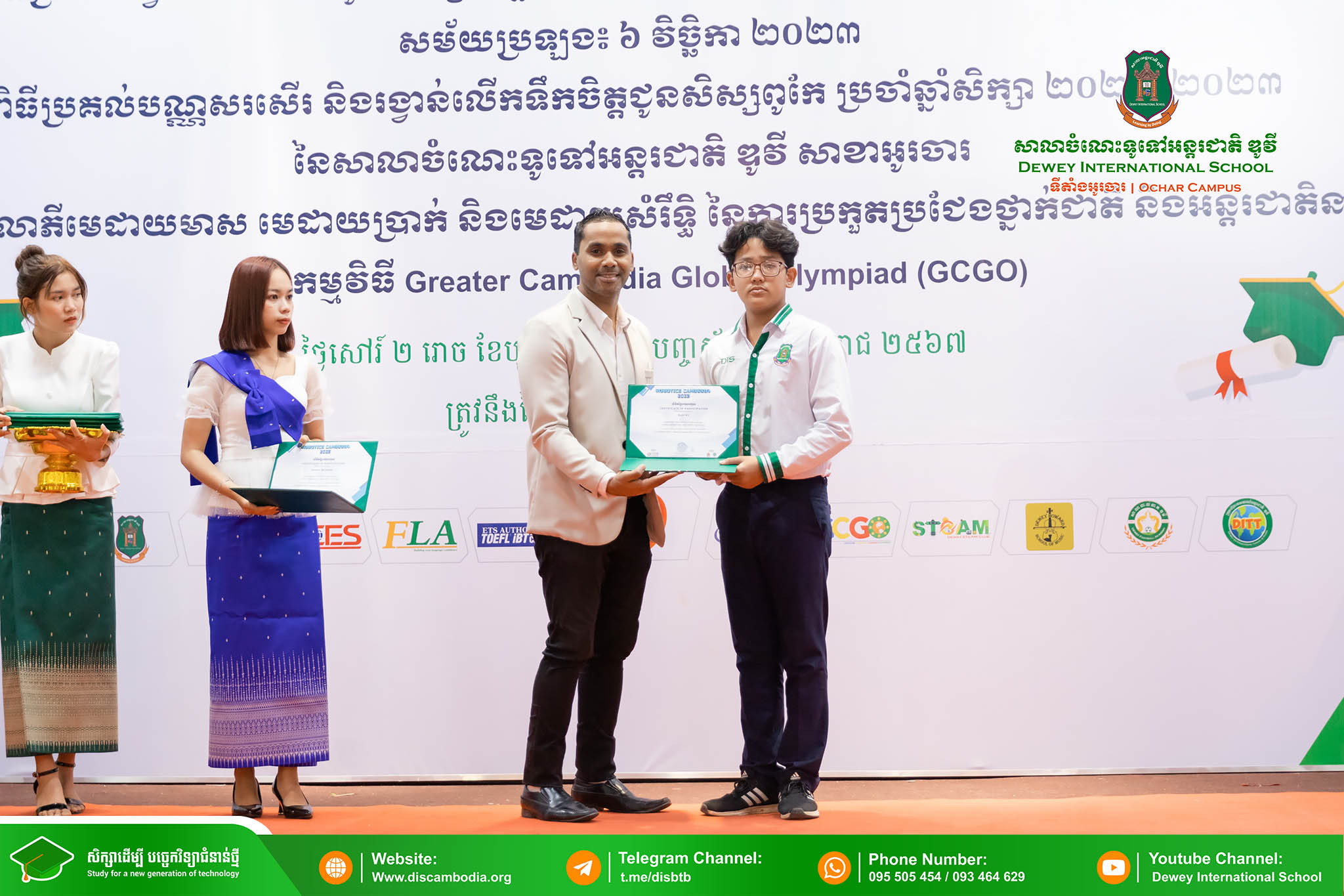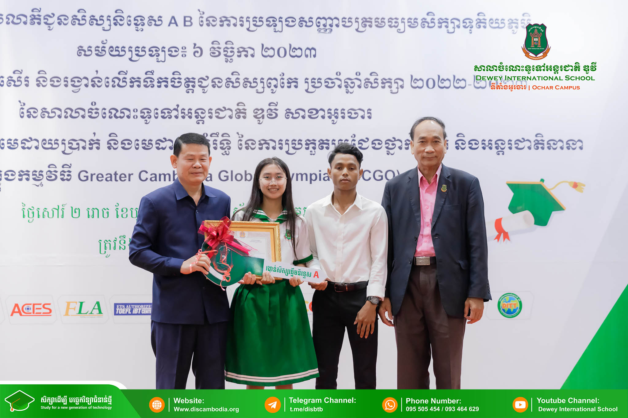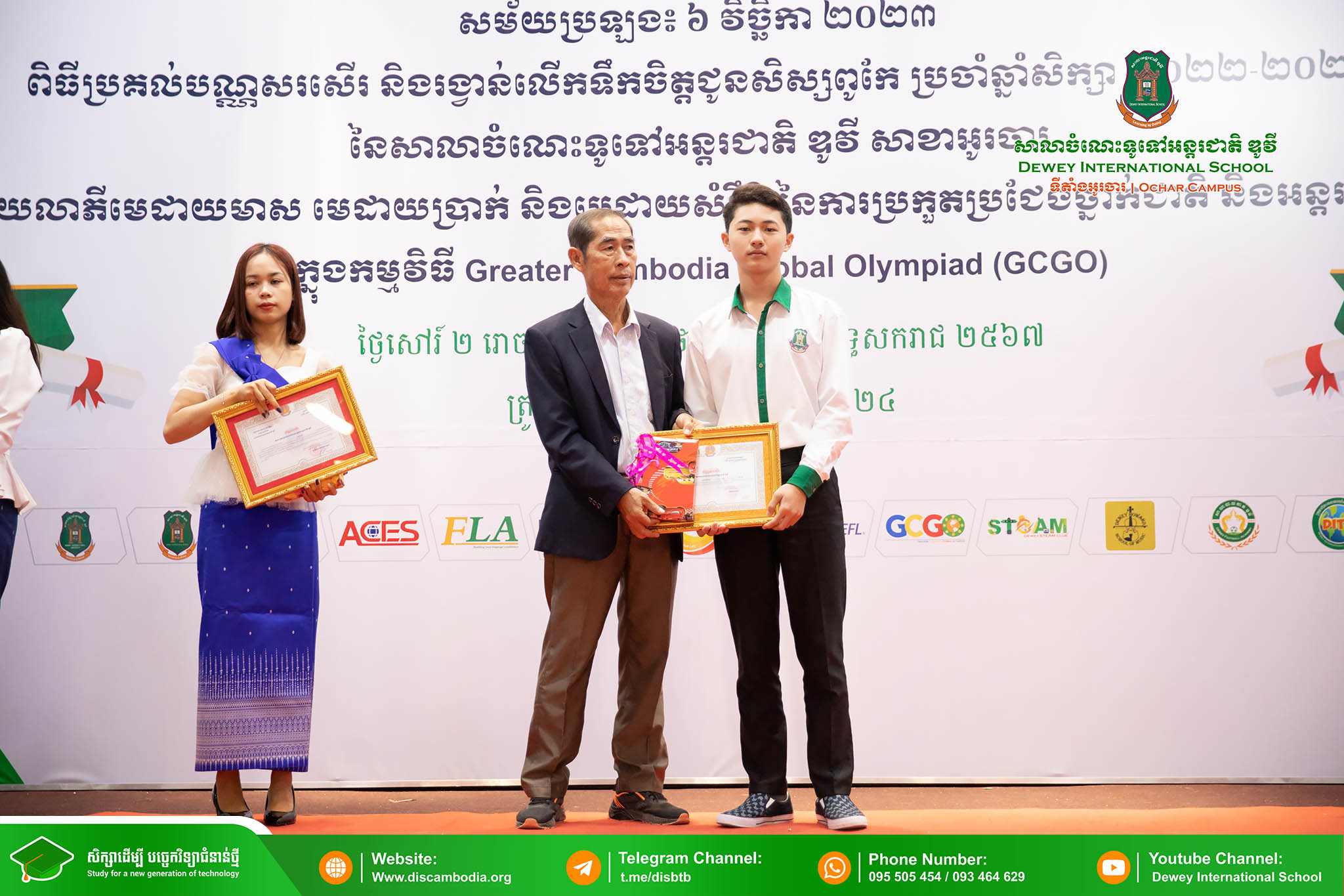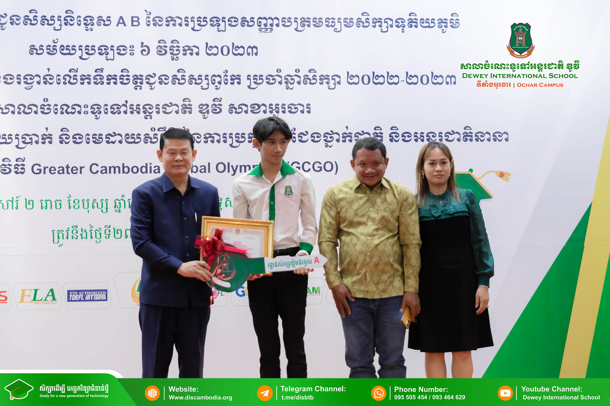 ពិធីប្រគល់បណ្ណសរសើរ និងរង្វាន់លើកទឹកចិត្ត សិស្សនិទ្ទេស A, B និងសិស្សពូកែប្រចាំឆ្នាំ ២០២២-២០២៣ ព្រមទាំងមេដាយជ័យលាភីក្នុងការប្រកួតប្រជែងថ្នាក់ជាតិ និងអន្តរជាតិនានា