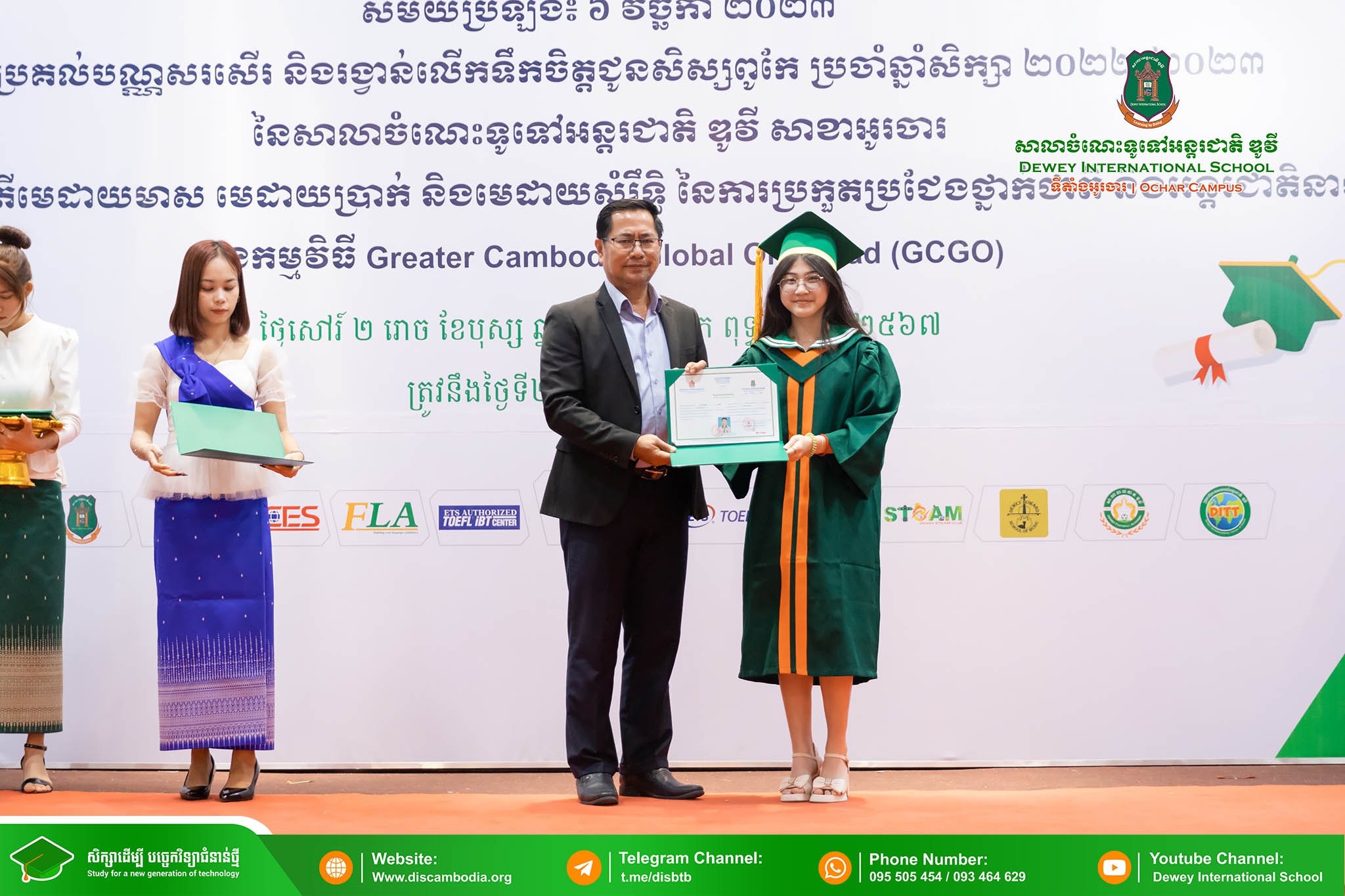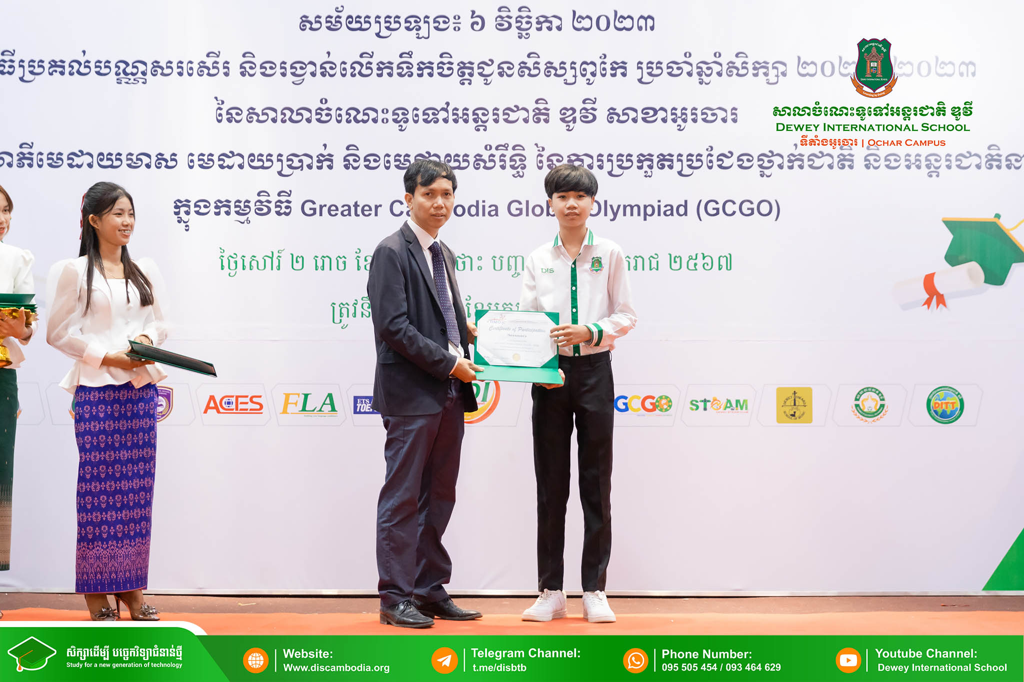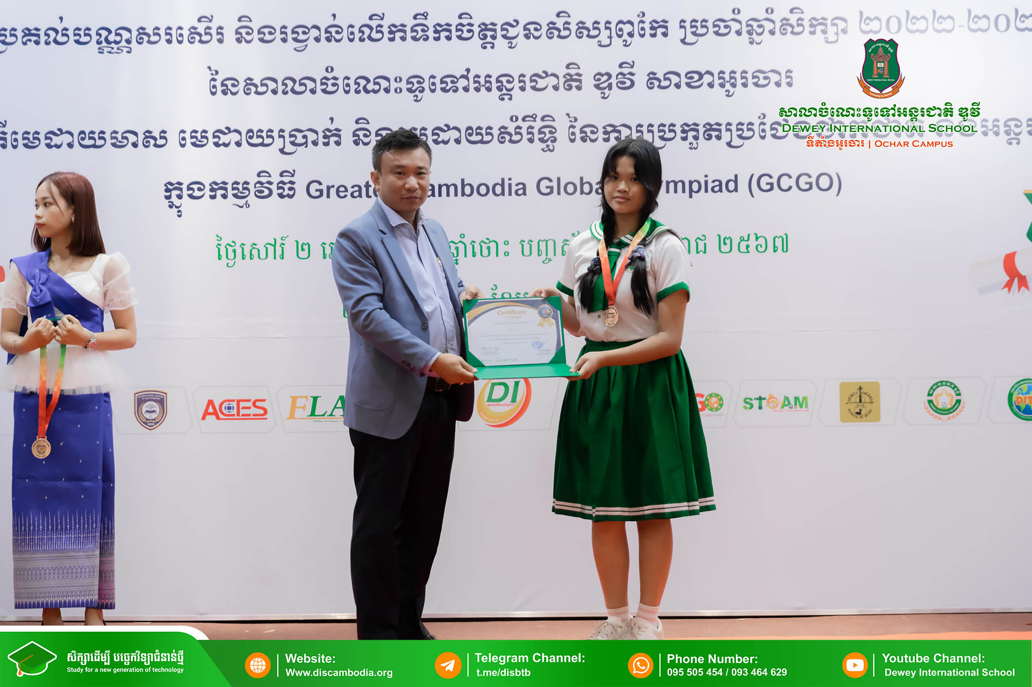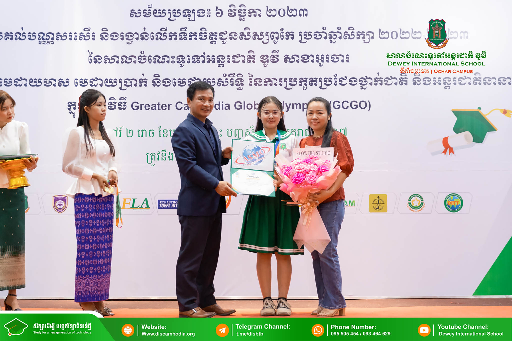 ពិធីប្រគល់បណ្ណសរសើរ និងរង្វាន់លើកទឹកចិត្ត សិស្សនិទ្ទេស A, B និងសិស្សពូកែប្រចាំឆ្នាំ ២០២២-២០២៣ ព្រមទាំងមេដាយជ័យលាភីក្នុងការប្រកួតប្រជែងថ្នាក់ជាតិ និងអន្តរជាតិនានា