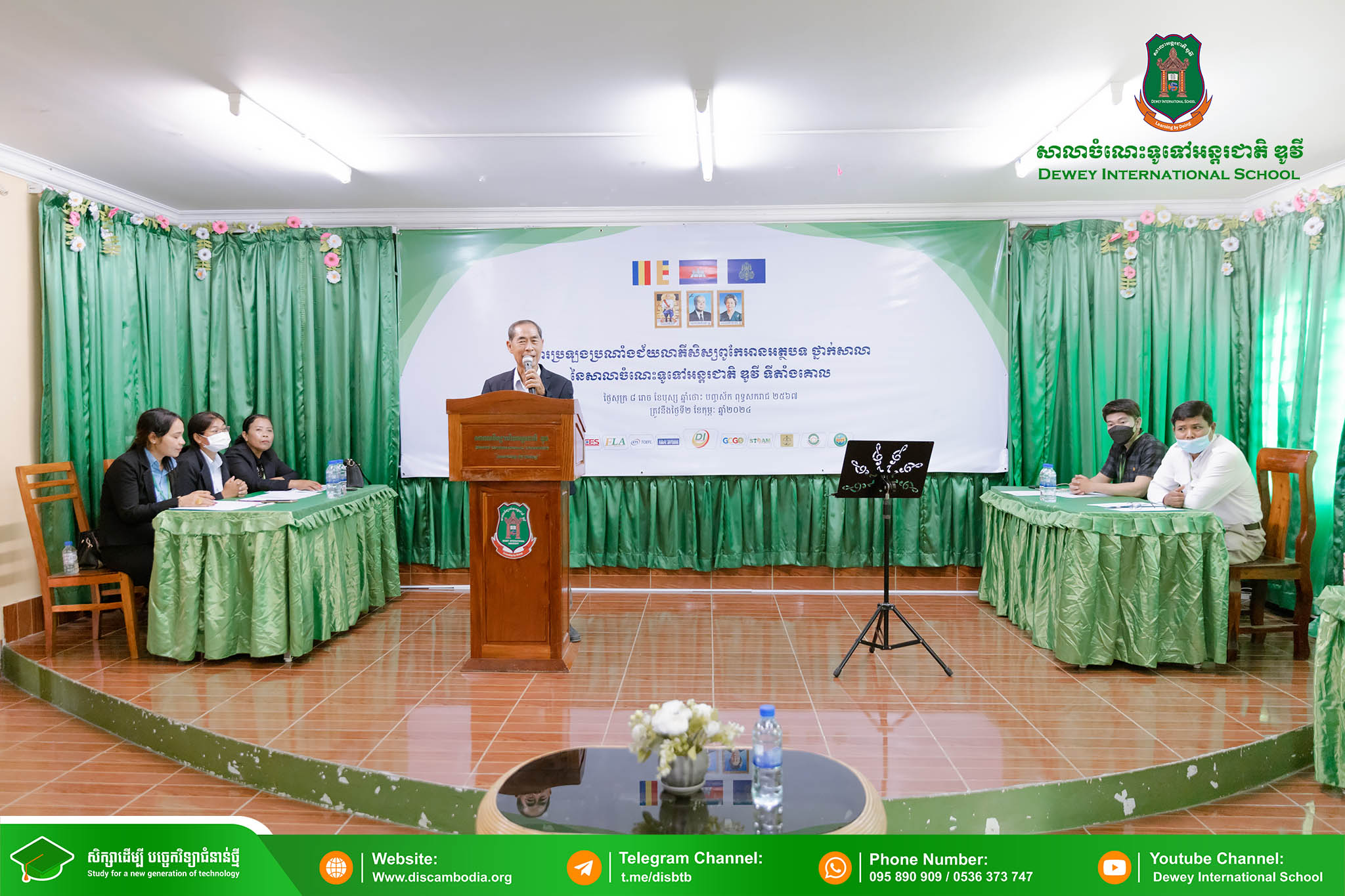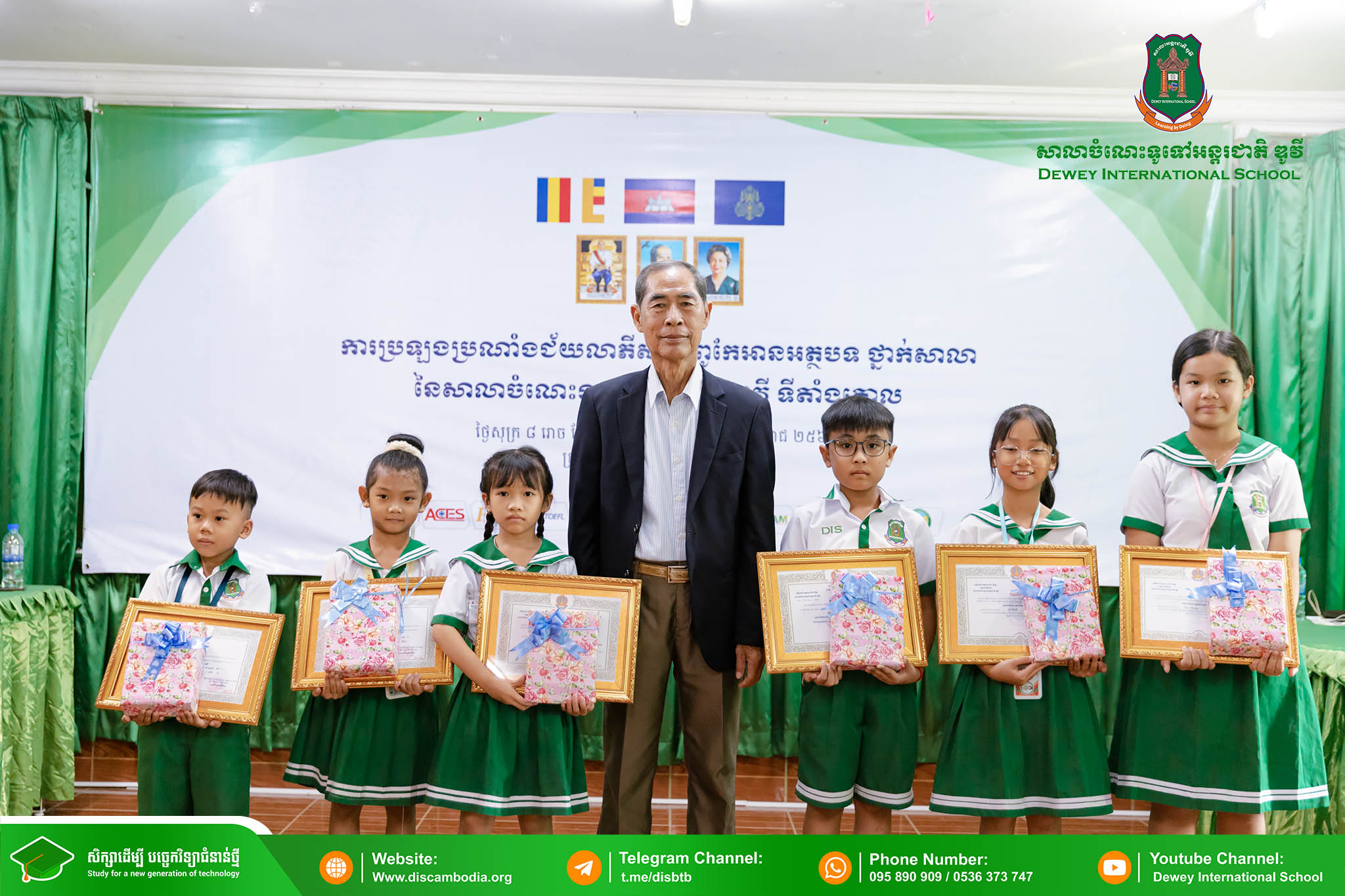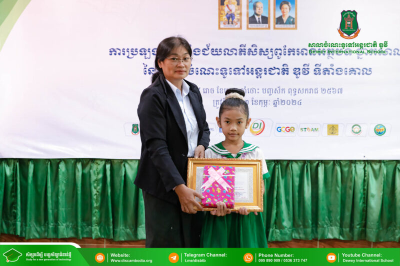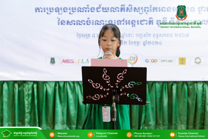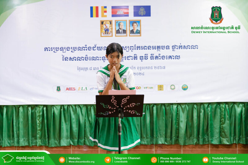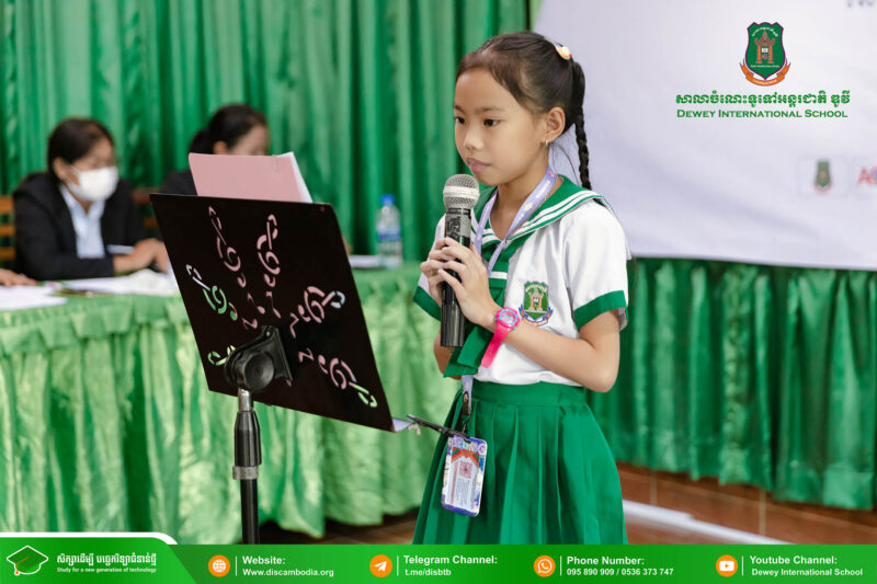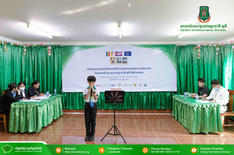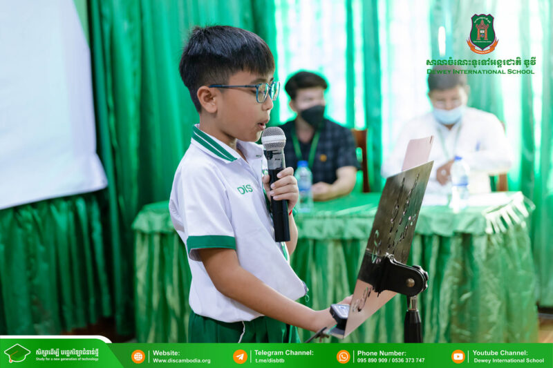 នាព្រឹកថ្ងៃសុក្រ ៨ រោច ខែបុស្ស ឆ្នាំថោះ បញ្ចស័ក ពុទ្ធសករាជ ២៥៦៧ ត្រូវនឹងថ្ងៃទី២ ខែកុម្ភៈ ឆ្នាំ២០២៤ សាលាចំណេះទូទៅអន្តរជាតិ ឌូវី ទីតាំងគោល បានរៀបចំពិធីប្រឡងប្រណាំងជ័យលាភីសិស្សពូកែអានអត្ថបទ ថ្នាក់សាលា ប្រចាំឆ្នាំសិក្សា ២០២៣-២០២៤ ក្រោមអធិបតីភាព លោកនាយក នាក់ ម៉ាង។